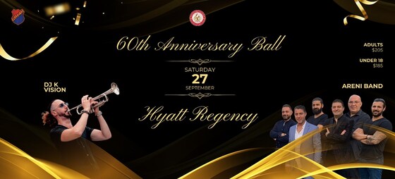 You are warmly invited to the Homenetmen Antranig 60th Anniversary Gala, a night of glamour and community at the stunning Hyatt Regency Sydney. Join our cherished Homenetmen family as we pay tribute to the countless members and families whose dedication has shaped six incredible decades of our history. This commemorative evening will be a heartfelt tribute to our shared legacy and a toast to our bright future. Prepare for an unforgettable evening of entertainment, featuring the classic and beloved favourites, Areni Band. Adding a contemporary edge, DJ K Vision will be bringing his signature funky spice to ensure the celebration continues all night long. Let's raise a glass to 60 years of achievement. We can't wait to celebrate this significant milestone with you. To book your table for 10 and be part of this landmark occasion, please contact us using this form.